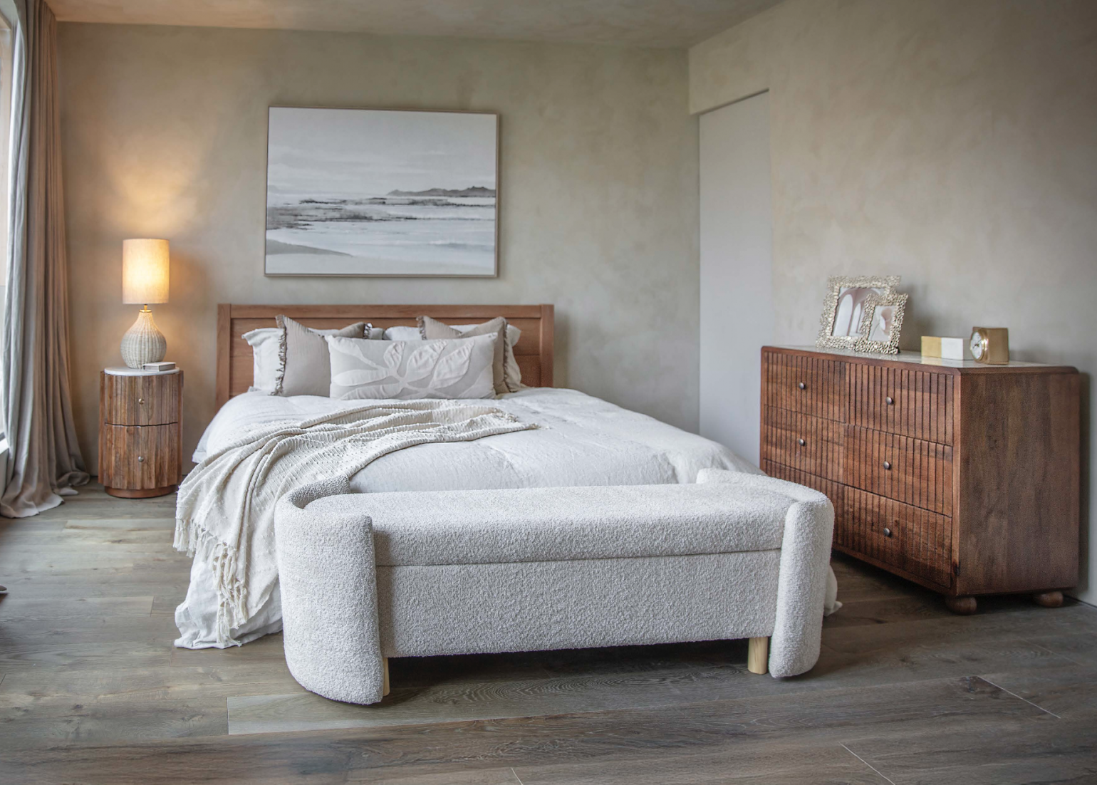 A cluttered room can lead to a cluttered mind. Keep your space organised and free from distractions. Considered decor and soft, neutral colour palettes to enhance relaxation and encourage better sleep.