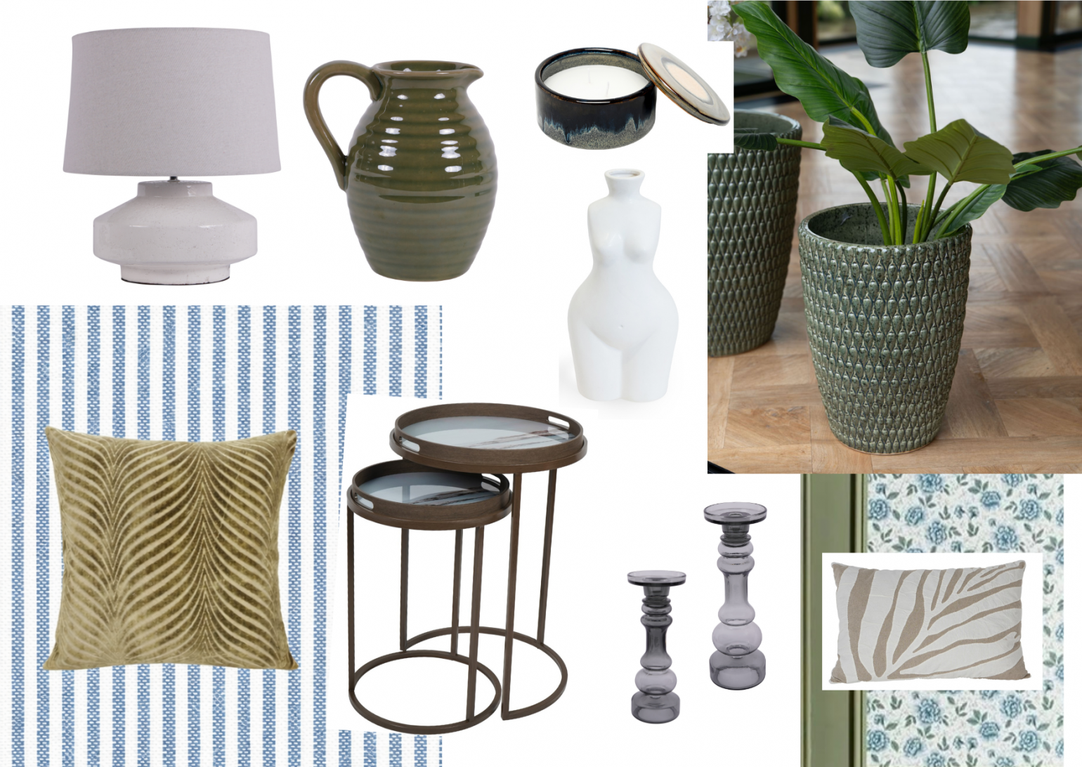 While you may not be able to quickly change a paint colour or wallpaper, you can look at your accessories and switch out colours to ensure you have a cohesive and calming palette around you. Muted neutrals, soft blue and earthy tones focus on gentle contracts rather than bold statements. Mixing colours across materials such as printed fabrics, painted furniture and ceramic accessories can help make your room feel complete and considered.