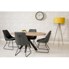 The Miranda Dining Table with SmarTops properties; Heat, Stain and Scratch resistant, perfect for easy wear and cleaning. The range includes Rectangular, Round, Oval, Fixed and Extending options.Featuring black powder coated legs and paired with a designer black metal base. Add a mix of chairs or benches to create your own unique space to entertain you friends and family. Available in 3 wood effect tops in Grey, Light Walnut and Oak.