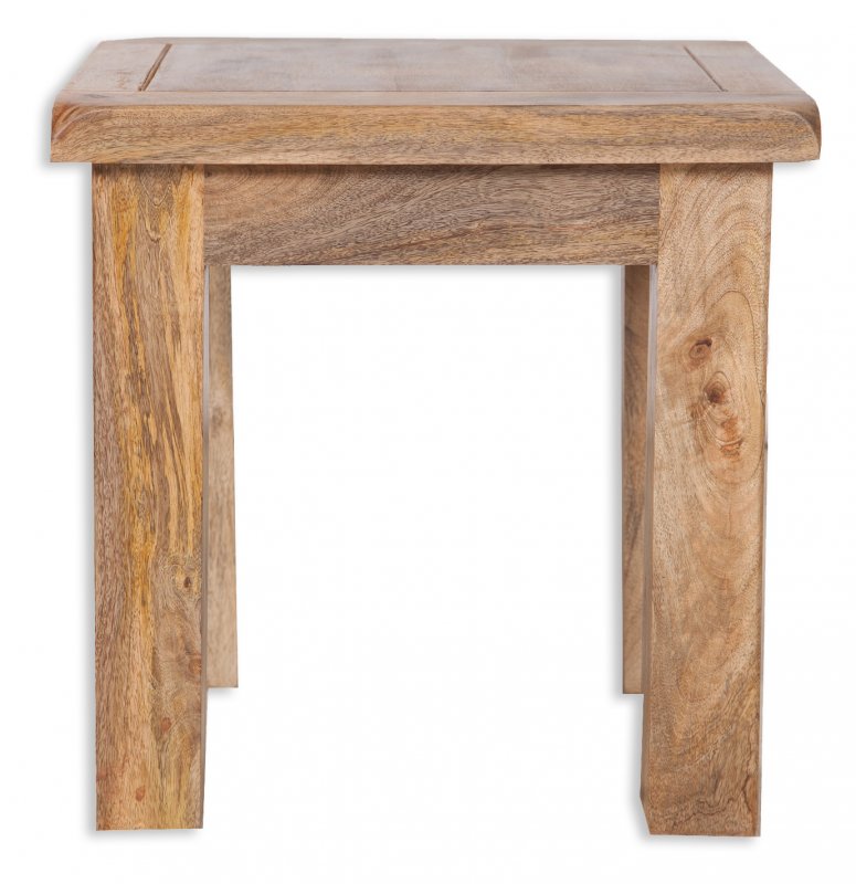 The Ophelia Lamp Table. Part of a rustic range made from solid mango wood with a slightly destressed look, with an iron forged cushion knob handles. Matching Dining, Living and Bedroom Ranges available.